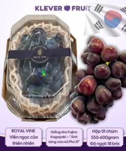 Nho Royal Vine Hàn Quốc là sản phẩm trái cây nhập khẩu cao cấp, nổi bật với chất lượng hoàn hảo từ hình thức đến hương vị. Loại nho này không chỉ sở hữu vẻ ngoài sang trọng với quả lớn, căng mọng, màu tím đậm hoặc đỏ sẫm, mà còn mang đến vị ngọt đậm đà, hậu vị kéo dài và hương trái cây tự nhiên cuốn hút. Với hàm lượng đường cao (Brix 20+), Nho Royal Vine trở thành lựa chọn lý tưởng để thưởng thức hàng ngày hoặc làm quà biếu trong các dịp lễ đặc biệt.
